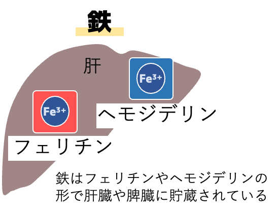 鉄は肝臓に貯蔵鉄(フェリチン、ヘモジデリン)として保存される