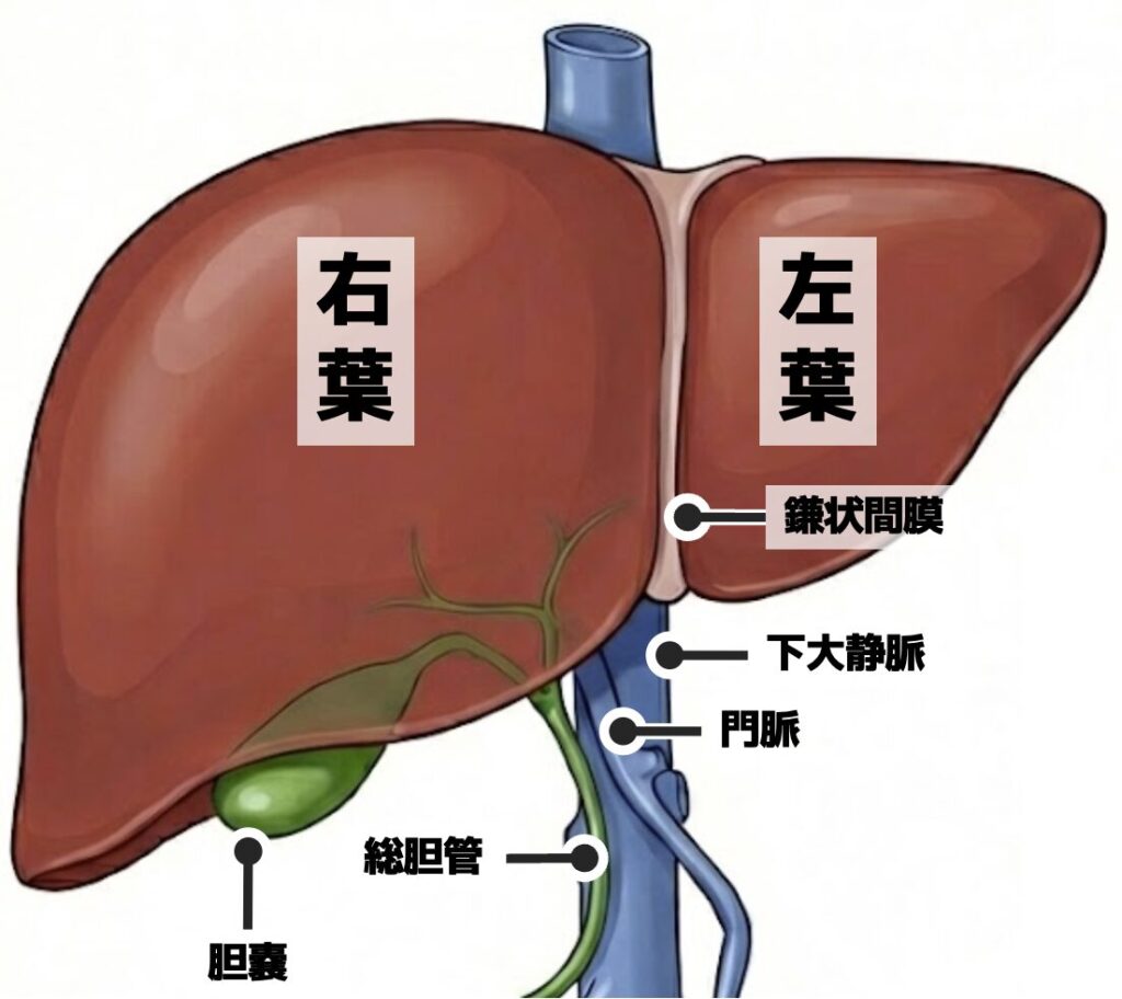 肝臓は右葉と左葉に分けることができ、分け方は2種類あります。