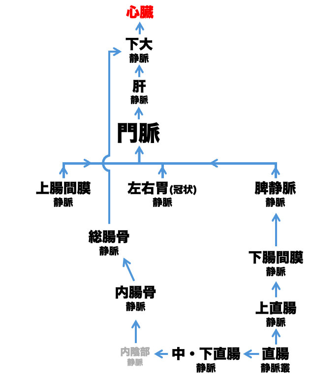 小腸、大腸、胃などの消化器の血液を集めて肝臓に入る静脈のこと。